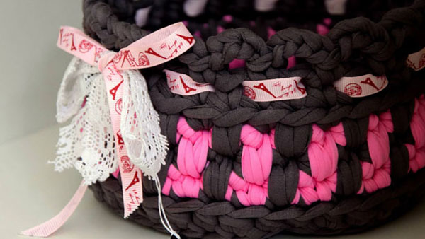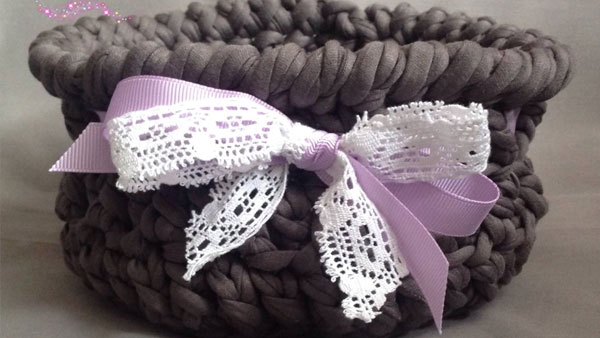 Uncinetto e fettuccia, con ampia scelta di colori, per realizzare splendidi cestini, anche personalizzati, all'uncinetto dai molteplici impieghi nella vostra casa.