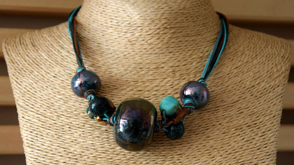Una collana fatta con metri di catenelle ad uncinetto e qualche perlina; un'altra creata all'insegna del riciclo con un nastro di seta derivato dagli scarti di sartoria e dei fili di cotone... tutto in nome della fantasia!